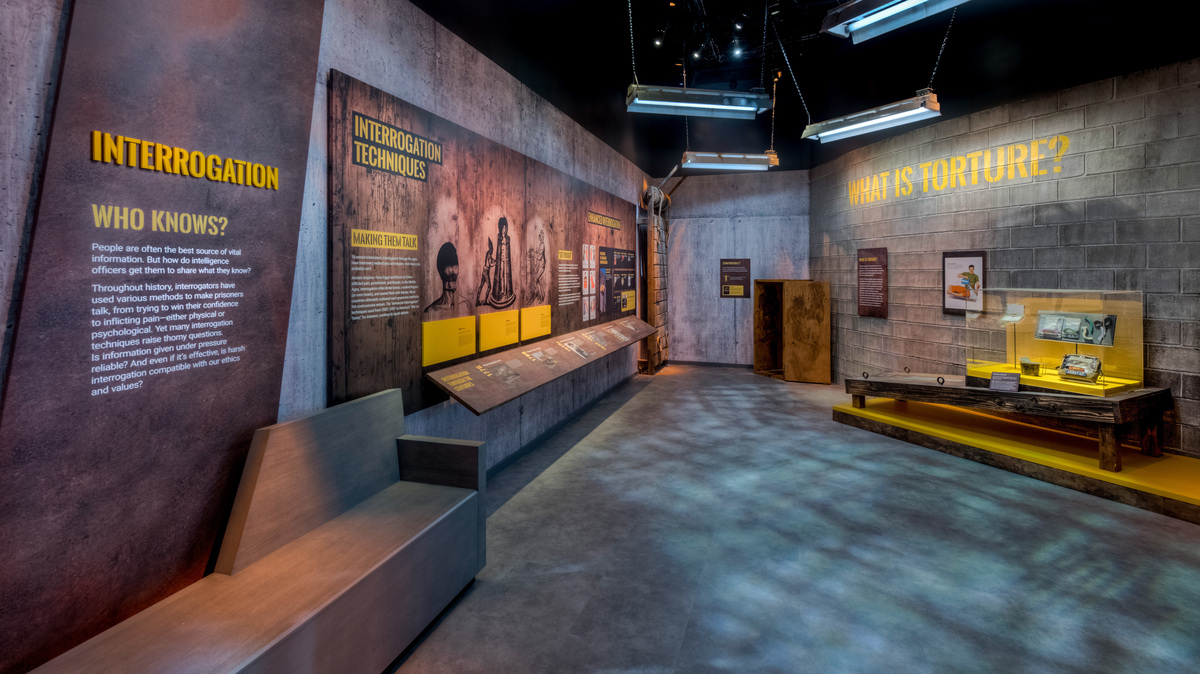 The new International Spy Museum doesn’t shy away from controversy. One exhibit room has yellow stencil on a stark, cinderblock wall that reads, “What is torture?”