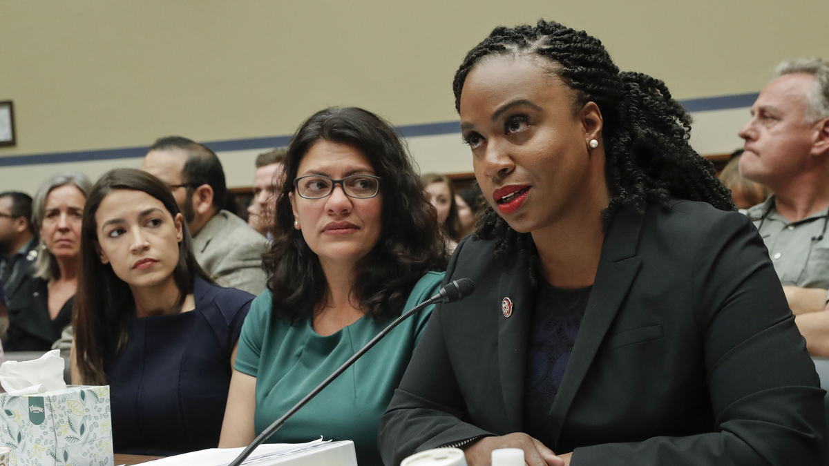 Reps. Alexandria Ocasio-Cortez, Rashida Tlaib, and Ayanna Pressley, three of the four Congresswomen President Trump has attacked on twitter, during a House hearing last week.