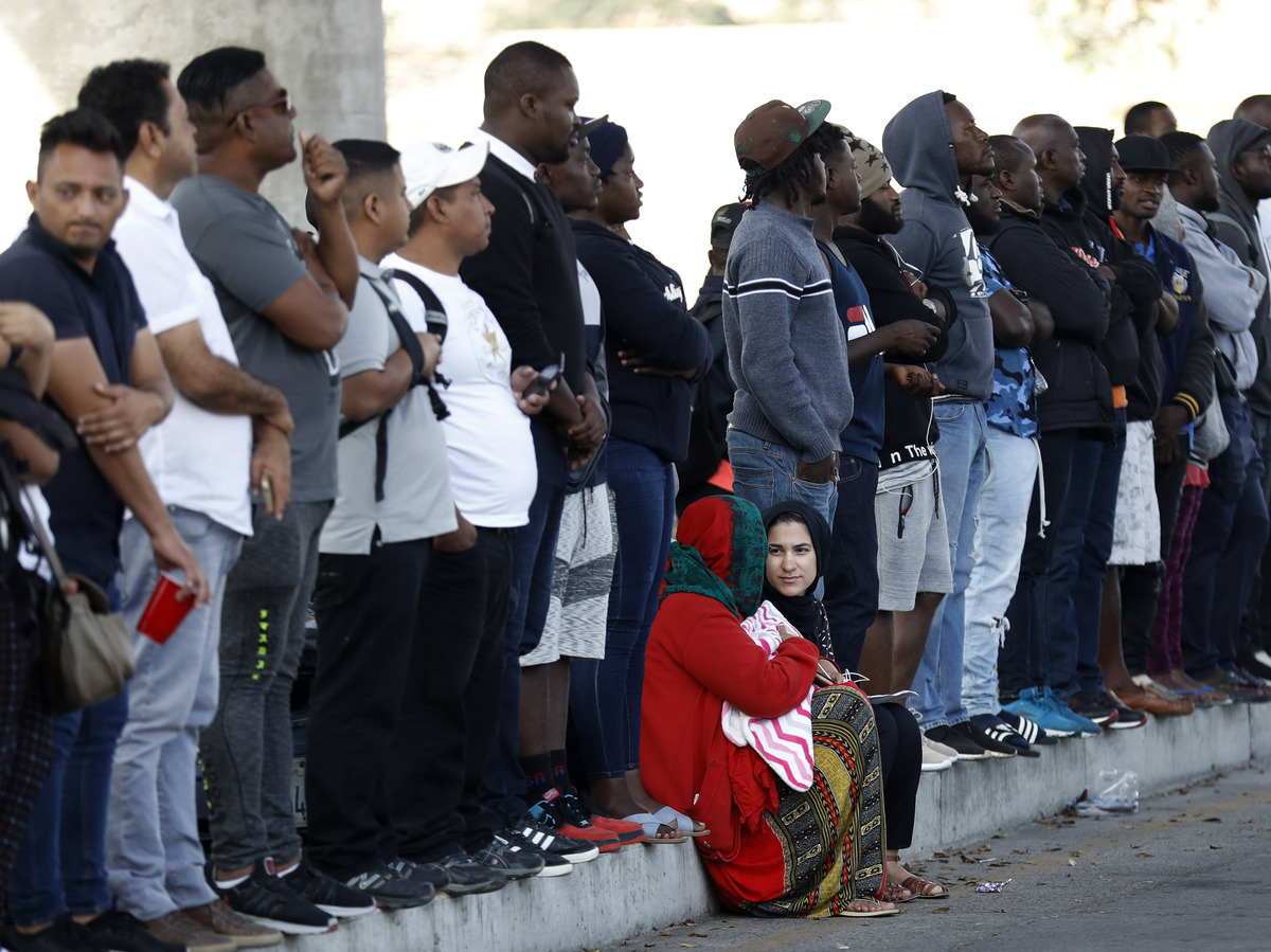 On Tuesday, a throng of immigrants stood around in a Tijuana parking lot, near the San Ysidro Port of Entry, as they waited for immigration hearings in the U.S., under the Trump administration’s “remain in Mexico” policy.